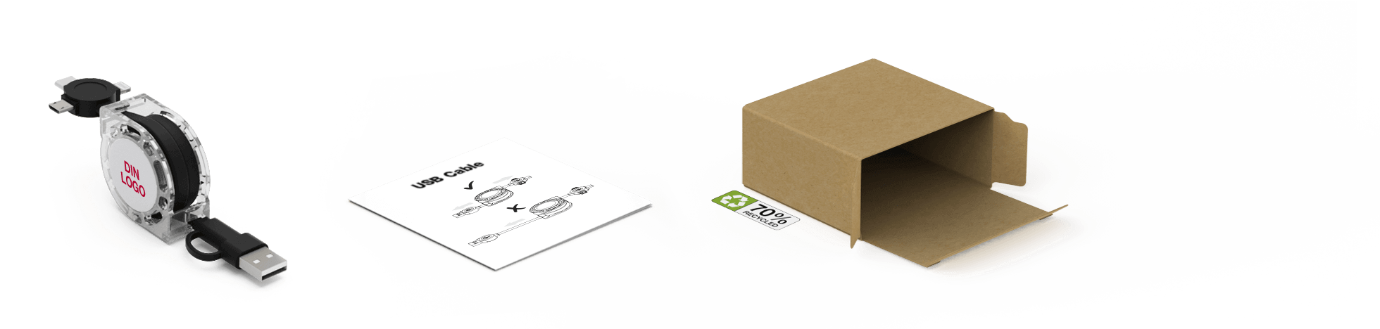 Motion USB-kabelen har et fremhevet trykkområde på begge sider som kan merkes med bilde, logo, slagord, konferanse og møtedetaljer og mer. Motion støtter dataoverføring- og ladingsfunksjoner og er kompatibel med alle større enheter på grunn av de fire tilkoblingsalternativene, inkludert en standard USB-kontakt, Micro-USB, USB-C og en Lightning adapter. Hvis du vil ha en touch av tre, kan du sjekke ut vår -modell.