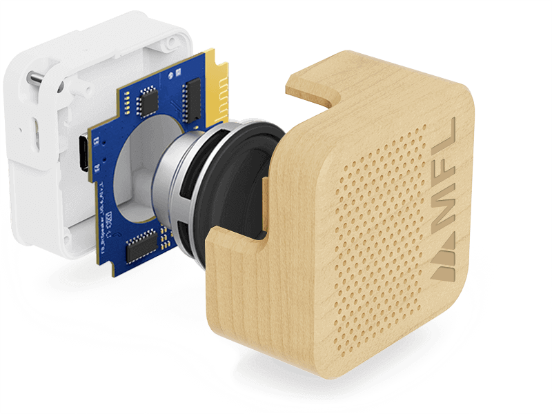 Egendefinerte Bluetooth®-høyttalere i tre med kvalitetslyd