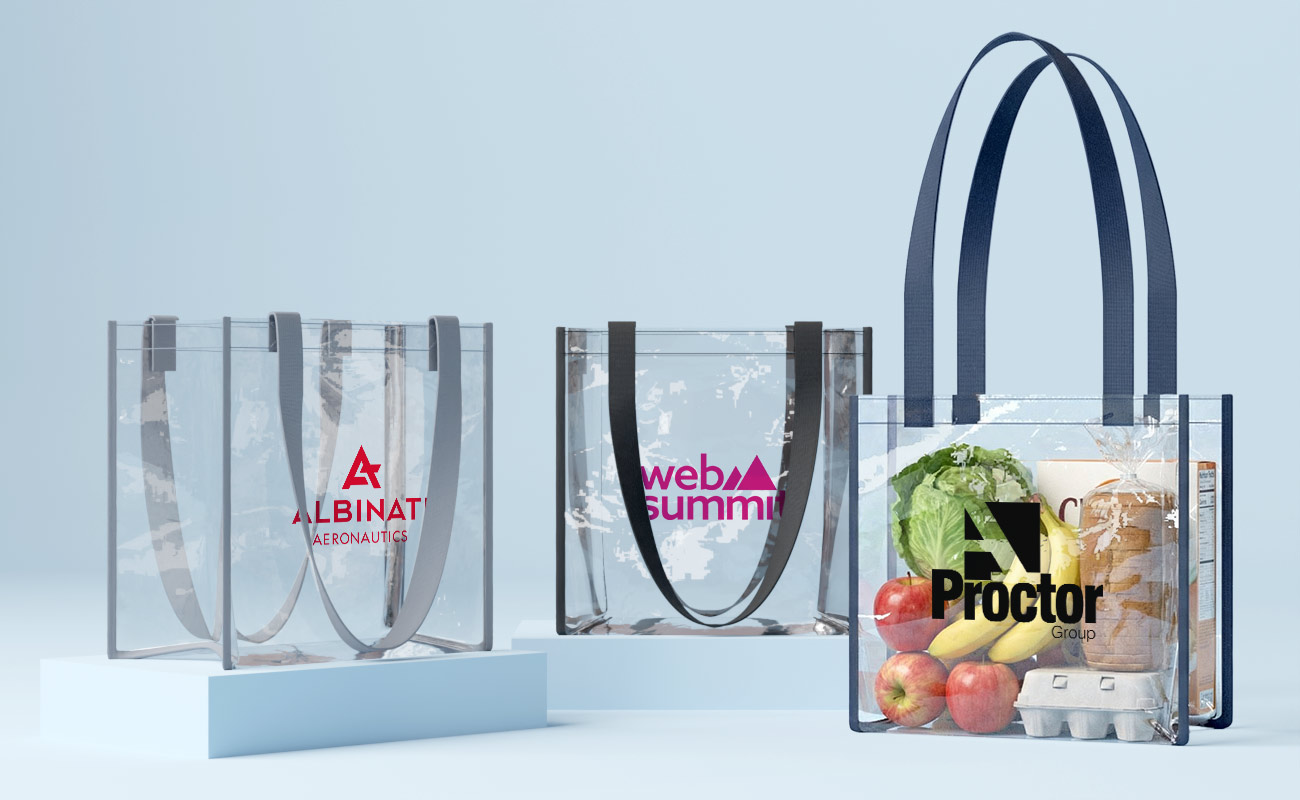 Bildegalleri - Kampanje Gjennomsiktige bærevesker i PVC med logo, Lucid