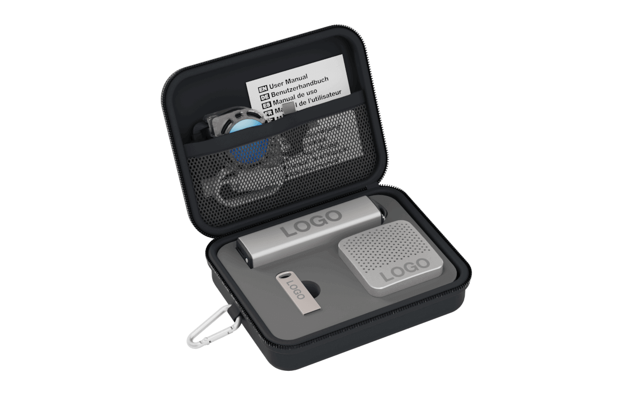 fredag 31. oktober 2025 | Du plasserer en bestilling plassert med Flashbay for Metal L Gavesett, trykt med firmaets logo, og forehåndslastet med bedriftens data (for eksempel). |