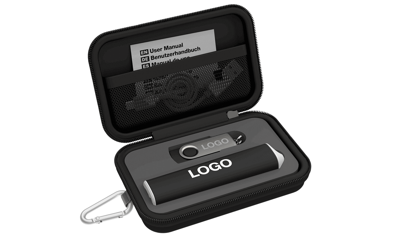 fredag 31. oktober 2025 | Du plasserer en bestilling plassert med Flashbay for Pure S Gavesett, trykt med firmaets logo, og forehåndslastet med bedriftens data (for eksempel). |