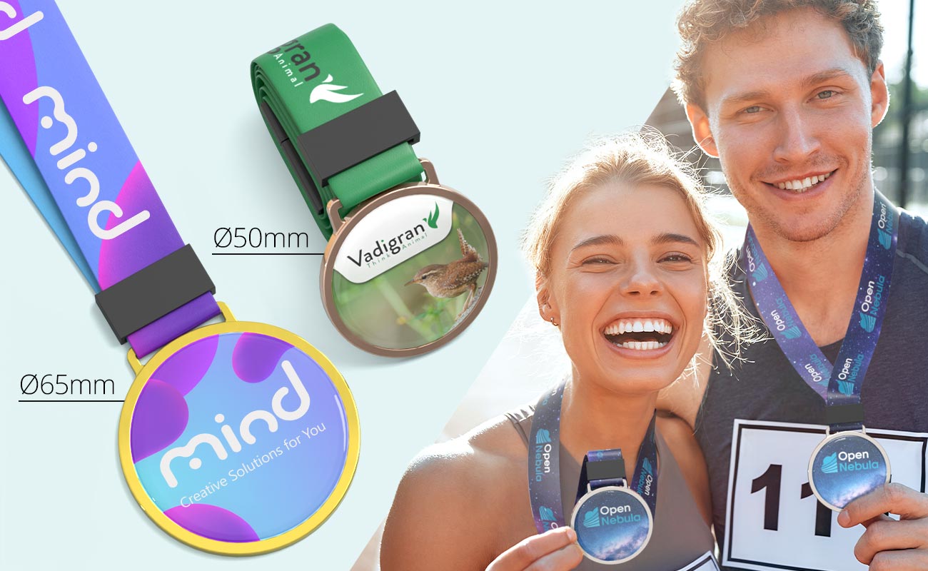 Elite er en medalje som er designet for å fremheve arrangementet, bedriften eller begivenheten den er laget for. Du kan trykke ditt ønsket design både i midten av medaljen og på stroppen. Logodesignet ditt blir beskyttet av et glansfullt belegg som beskytter den mot riper og generelle slitasjer, samtidig som den gir logoen en 3D effekt. Elite er tilgjengelig i to størrelser - 50 mm eller 65 mm diameter - slik at du kan velge den størrelsen som passer best til deres arrangement. Du kan også velge mellom gull-, sølv- eller bronse, noe som gjør den ideell for premieutdeling for pallplasseringer.