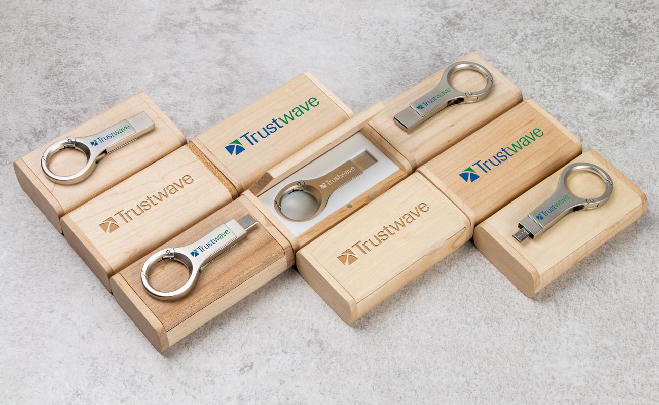 Treboksen er en flott følgesvenn for minnepinnen. Lokket er festet med et magnetfeste og kan screenprintes eller lasergraveres med din logo. Boksen er laget av lønn fra ansvarsfullt skogbruk, FSC-sertifisert lønn.Se bildegalleri