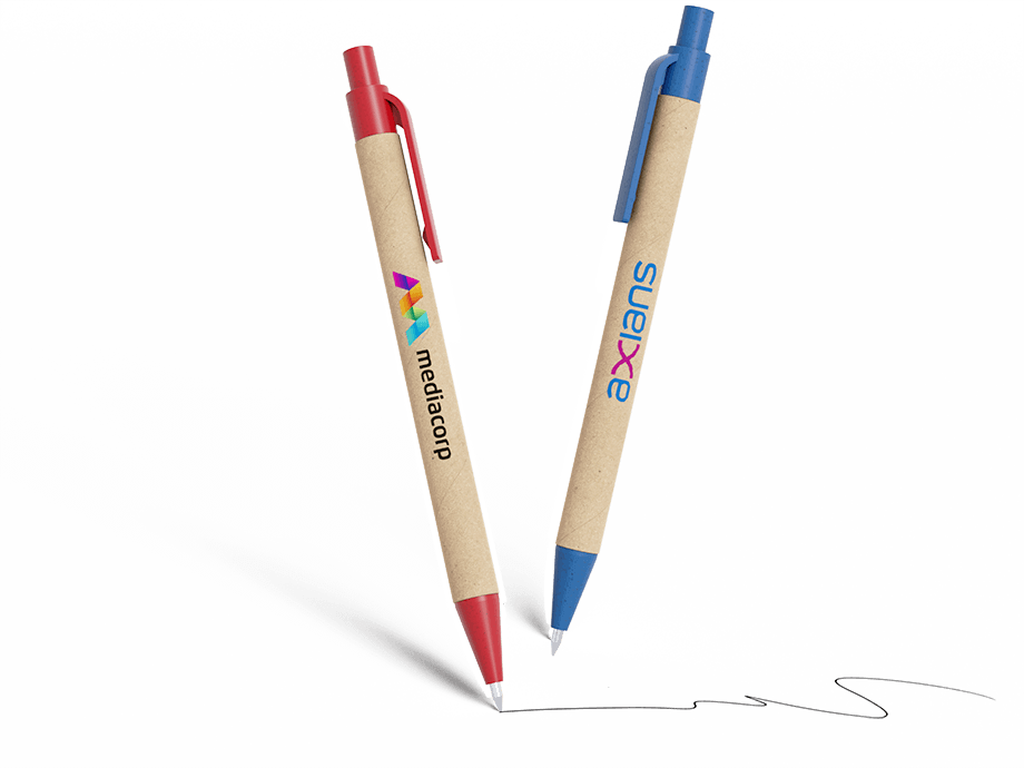 Vår Ditto kulepenn er et miljøvennlig reklameprodukt som vil bli tatt vare på og brukt i mange år. Pennen er laget av et slitesterkt resirkulert pappmateriale som er designet for å påføre logoen din på en naturtro måte. Pennespissen trykkes inn og ut med den smarte klikk-knappen, og pennen har også en praktisk klips som gjør at du lett kan feste den til notatbøker eller papirer.