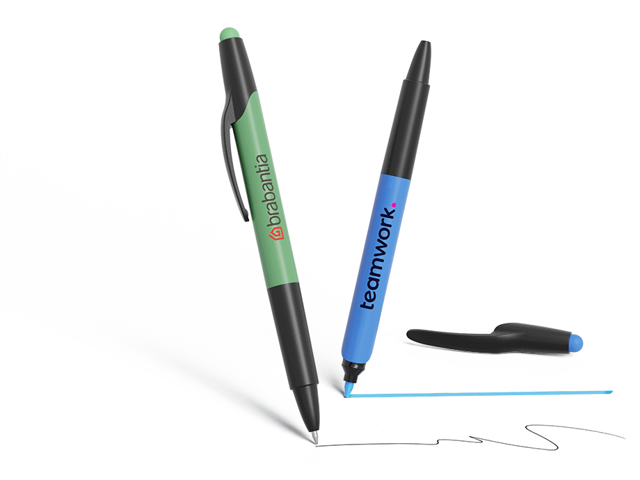 Glow er en kulepenn men også en kombinasjon av highlighter og styluspenn. De to trykkområdene kan merkes med din logo, slagord, nettadresse og mer. Glow er et kjempe populært gaveartikkel som kan brukes i mange år framover. Ta kontakt i dag for våre priser, vareprøver og raske leveringstider.