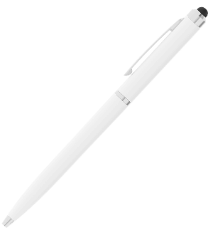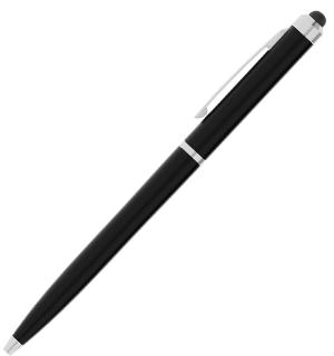 Sleek-kulepennen er en funksjonell modell som har en pekepennspiss som kan brukes på berøringsskjermen. Du kan rotere toppen av pennen for å skyve den svarte pennespissen ut og tilbake. På det dedikerte merkevareområdet kan du fototrykke logoen din og andre ting. En fantastisk modell som vil bli brukt daglig, og som gir deg god merkeeksponering.