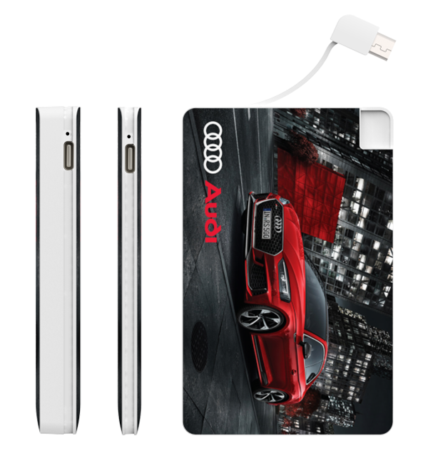 Vår Card powerbank kan tilpasses fullt ut med bedriftens logo, slagord eller annet design, noe som sikrer maksimal merkevareeksponering hver gang den brukes. Det store trykkområdet på forsiden og baksiden gjør det mulig å trykke logoen i fullfarge med vår fotoutskriftstjeneste. De høyoppløselige bildene er holdbare, slik at logoen din vil se skarp ut hver gang den brukes.