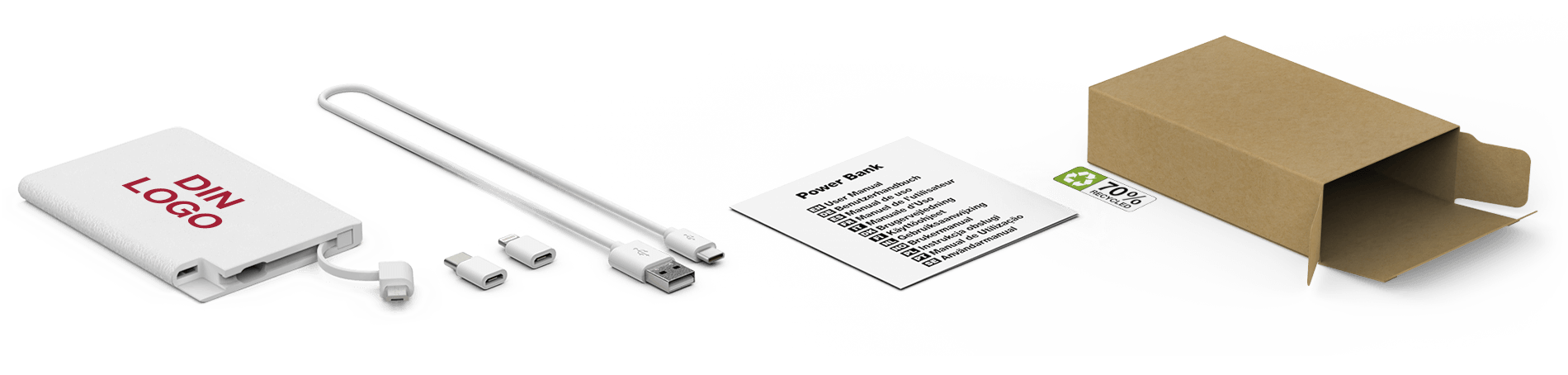 Lad din mobil i stil med vår Tour powerbank. Den kommer i kunstig skinn og kan screen printes på begge sider med din logo eller slagord. Tour powerbanken har en Micro USB-port, en "Lightning" adapter og en USB-C adapter slik at alle hovedtilkoblingstyper dekkes, inkludert iPhone™, iPad og Android-enheter.