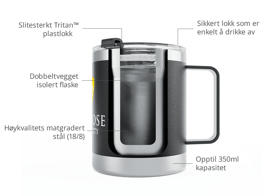 Inngraveringen av navnet på en måte som er umulig å slette. Perfekt for idrettslag og skoler slik at man unngår mulig forveksling av vannflasker eller reisekopper under trening og konkurranser. Hvert unike navn ved logoen og slagordet på drikkeredskapet.