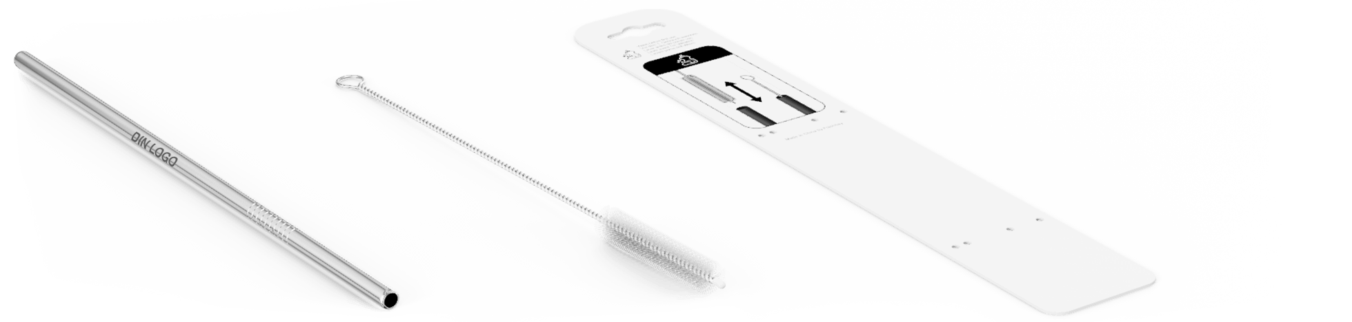 Straight gjenbrukbare metallsugerør har et stort trykkområde som kan bli lasergravert i klare detaljer. Hvert sugerør kommer med en pappemballasje for enkel distrubisjon på din neste konferanse eller arrangement, og kommer i tillegg med en praktisk sugerørbørste.
