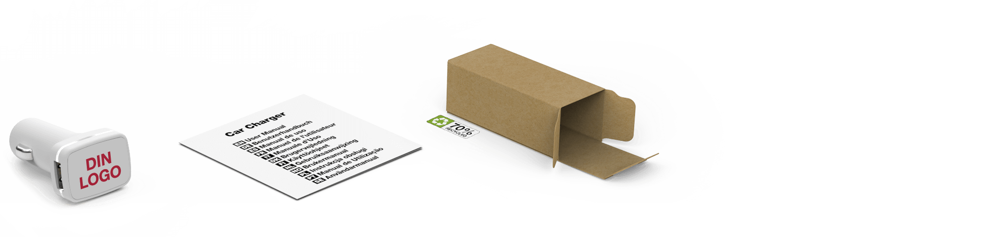 RoHS Dette produktet oppfyller RoHS-direktivet (EU restriksjoner for risikable gjenstander)Tilpassbar USB-billader med to porter