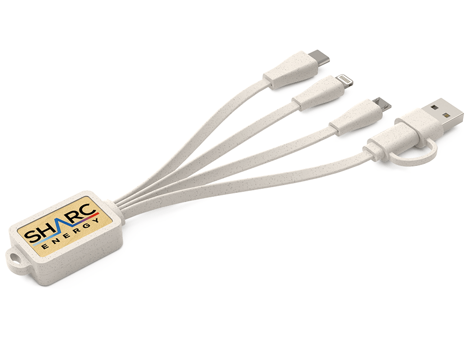 - Med standard USB-, USB-C-, lightning- og micro USB-kontakter
