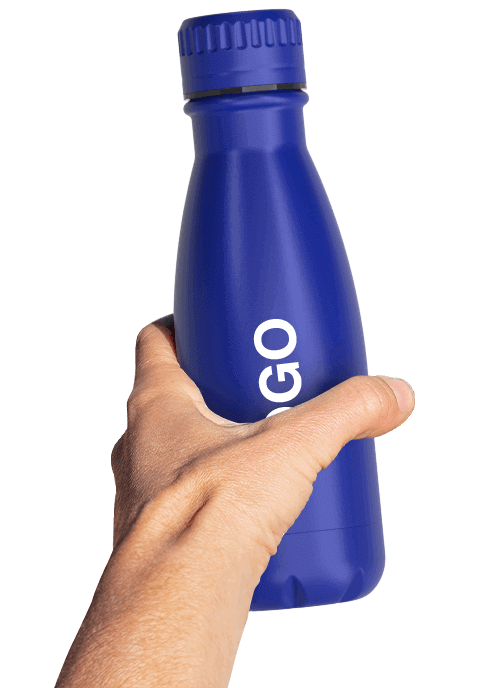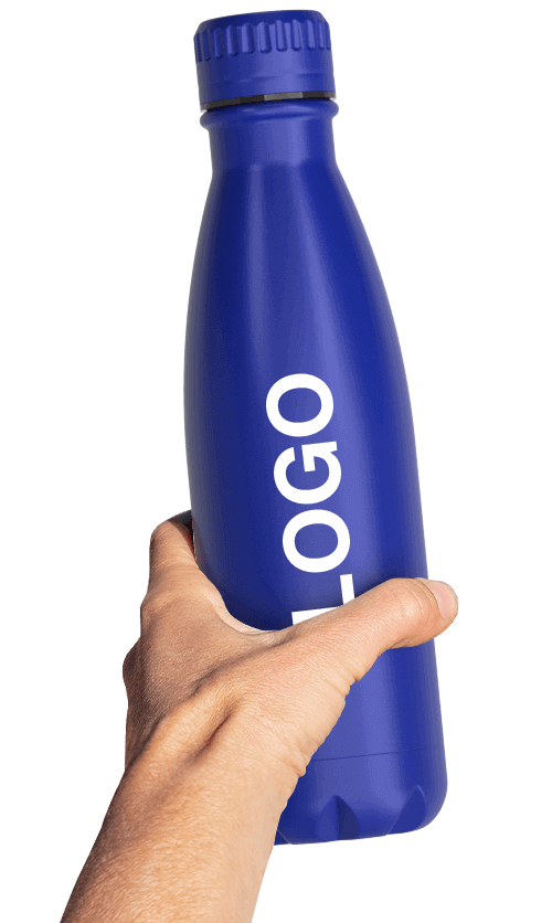 Isolert vannflaske med dobbeltvegg og merkevare