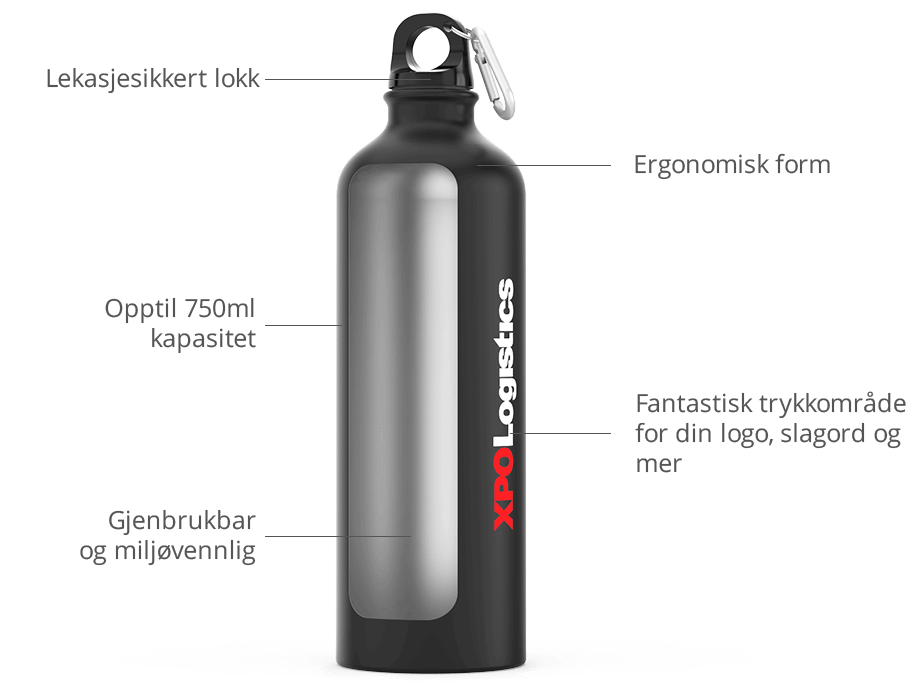Med vårt slitesterke aluminium og lekkasjesikre design kan kundene dine ta med seg Vita-flasken uansett hvor de går. Enten det er til kontoret, treningsstudioet eller på tur (den ekstra karabinkroken er utmerket til dette!). Dette betyr at potensielle kunder vil se merkevaren din på ulike steder, og kan til og med starte samtaler om virksomheten din.