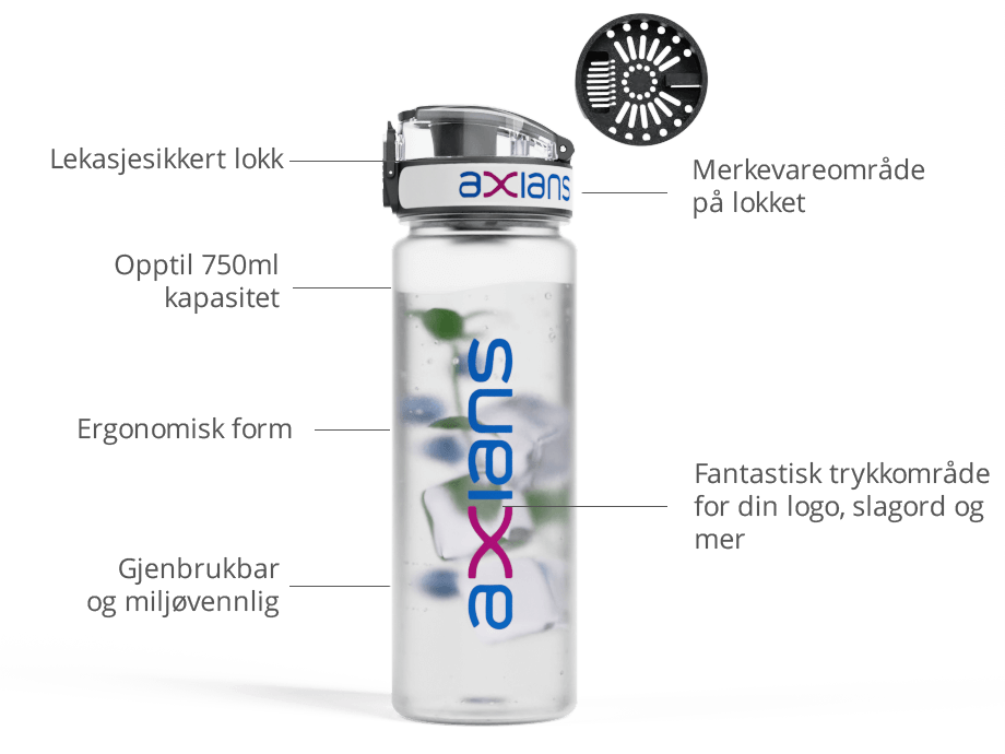 Aqualok Infuse er fullpakket med funksjoner som gjør den praktisk og tilfredsstillende. Det sikre, sølfrie lokket gjør den perfekt for bruk på farten eller travle arbeidsdager.